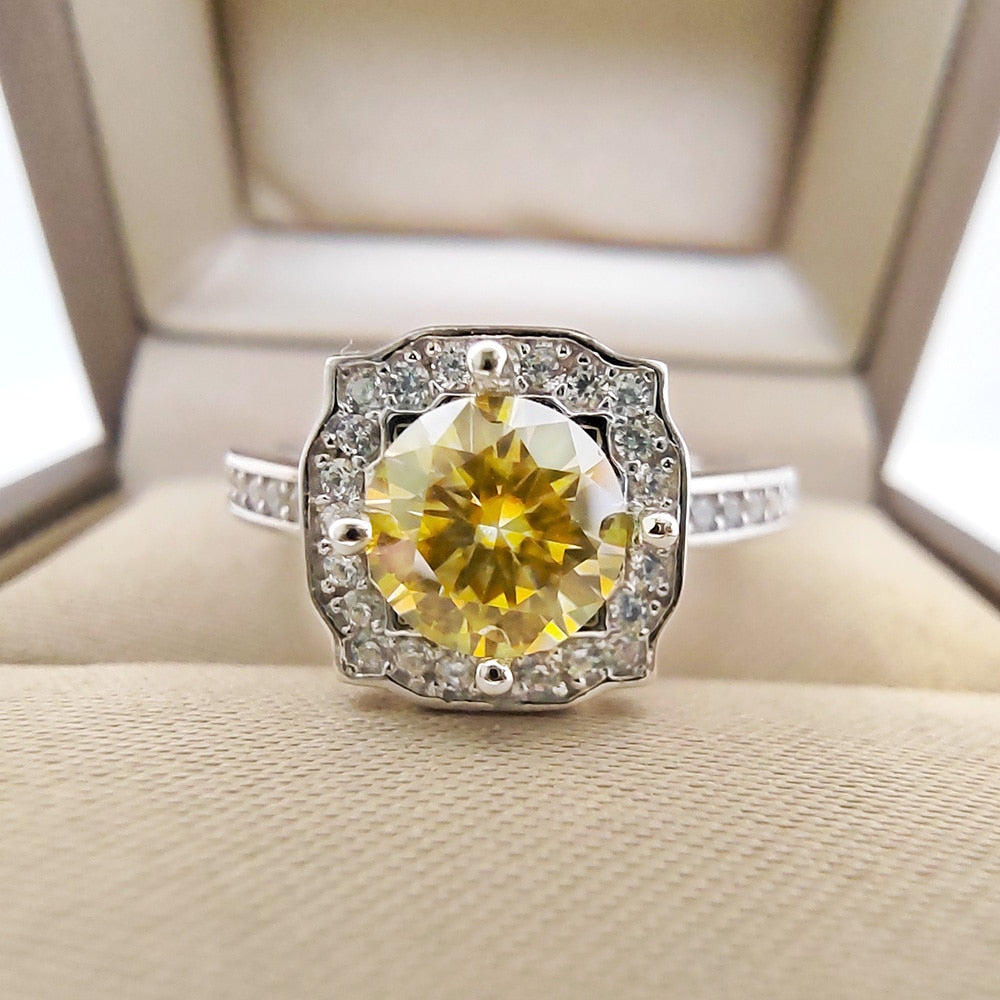 Our 1 Ct Vintage Colored Lad Diamond Square Ring, is made of S925 Silver. It features a 1 Carat-colored Moissanite.